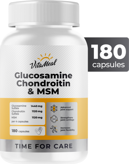 Глюкозамин и хондроитин — вещества, которые входят в состав соединительной ткани. Их дополнительный прием обеспечивает организму "сырье" для восстановления связок, суставов и хрящей. В форме сульфата они отлично усваиваются. MSM, источник органической серы, способствует снятию боли и воспаления.