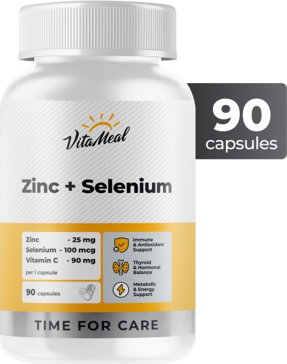 • Усиление иммунитета. Цинк помогает клеткам защиты «включаться» вовремя, витамин C поддерживает их активность, селен регулирует ответ организма на воспаление. В итоге иммунитет действует слаженно — в разгар простуд и во время восстановления после болезни.